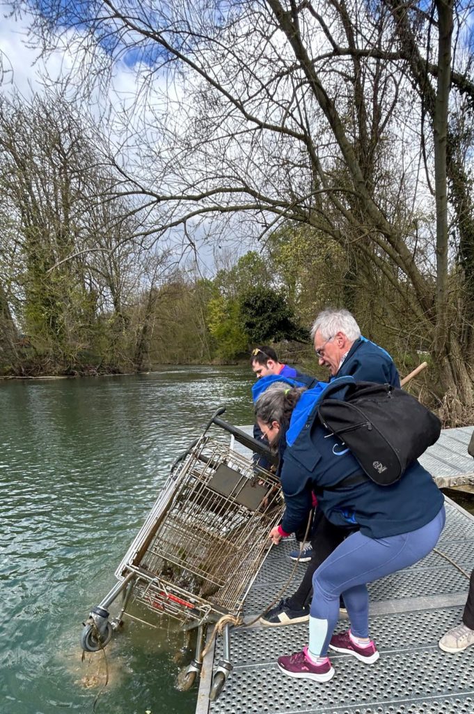 Les rameurs ont dans un premier temps débarrasser les déchets sur les berges et autour du ponton. Dans un second temps, ils ont ramassé les déchets flottants sur l’eau.
