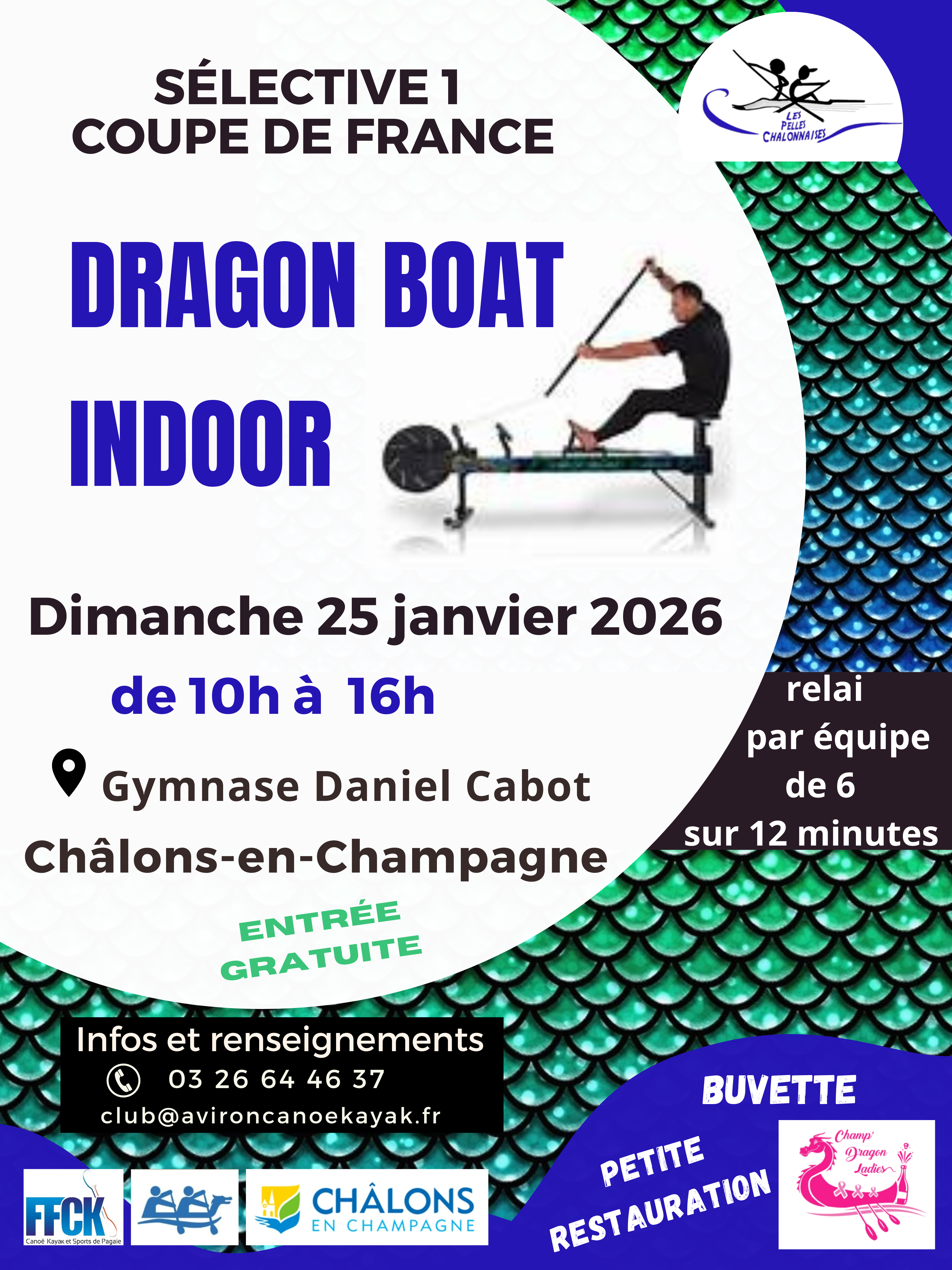 Première sélective de dragon boat indoor dimanche 25 janvier au gymnase Cabot à Châlons-en-Champagne.